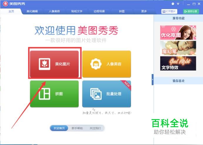 小编运用的是美图秀秀软件,因为它的操作简单。首先打开美图秀秀软件,选择美化照片。