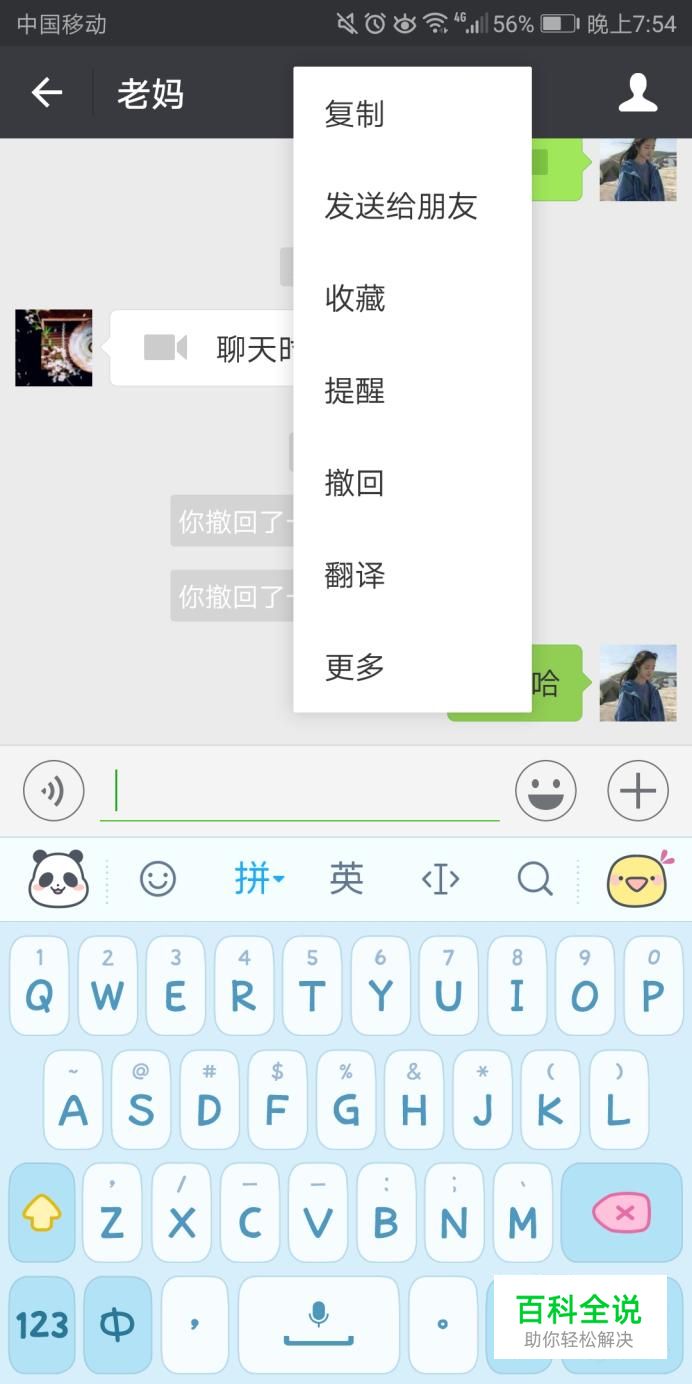 第三步:你就可以点击它,撤回你不想让对方看到的消息。