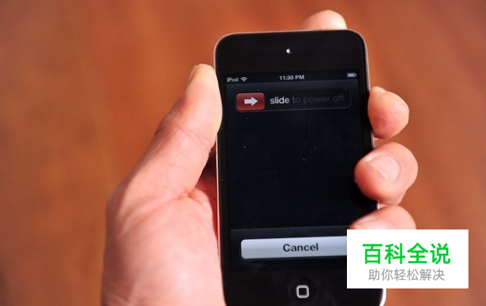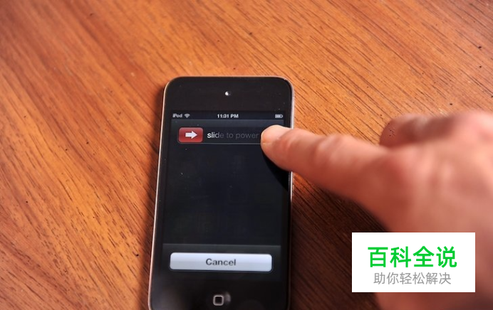 滑动滑动条。你的iPod将开始关闭。在按下其他按键前,确保先让iPod完全关闭。