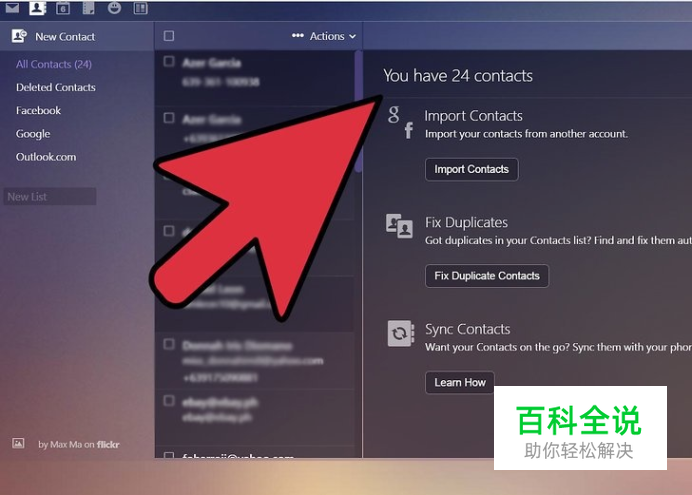查看联系人。在邮箱中,点击左上角的像地址簿的图标。点击之后,你就能看到一个网络联系人列表。要增加联系人(新建的账户里是空白的),点击左上角的“新建联系人”。你可以通过点击屏幕中央的按钮,然后根据提示,选择导入社交网站中的联系人。 将其他人添加到联系人列表中会有很多好处。比如,如果你忘记了别人的邮箱地址,你只需要在“收件人”处输入他的姓名,系统就会自动显示它的邮箱地址。当你要将邮件发送给很多人时,这样会很方便。