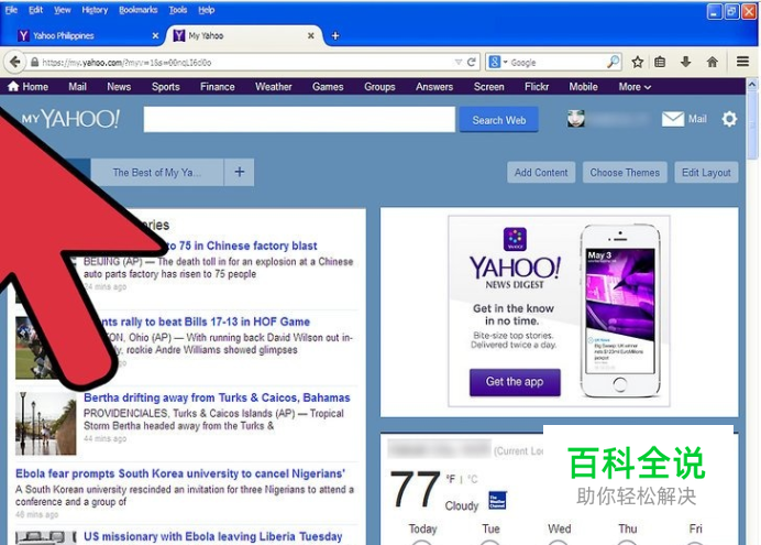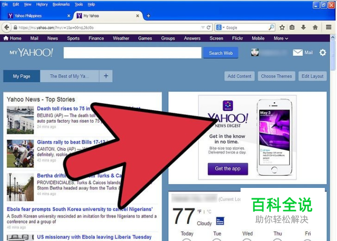 找到主页上可以定制的内容。创建雅虎账户的一个很方便的功能,就是你可以通过“我的雅虎”功能创建个人主页。在雅虎网站上,点击右上角的“我的雅虎”,你就会进入一个包含了很多专为你定制的信息的页面,包括了当地的头条新闻、本地天气、影片上映时间等等。