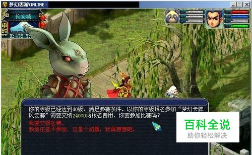 玩家可以找牌中杰(450,194)牌中圣(482,209)牌中仙(491,231)中的任何一个npc报名参加“卡牌风云赛”。每次比赛前30分钟停止报名,每周的非比赛时间都可以报名