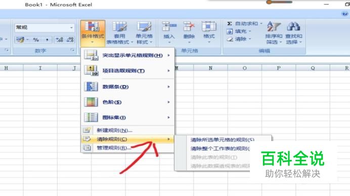 在弹出的窗口中选择“清除规则”,试一下能否改动字体颜色了