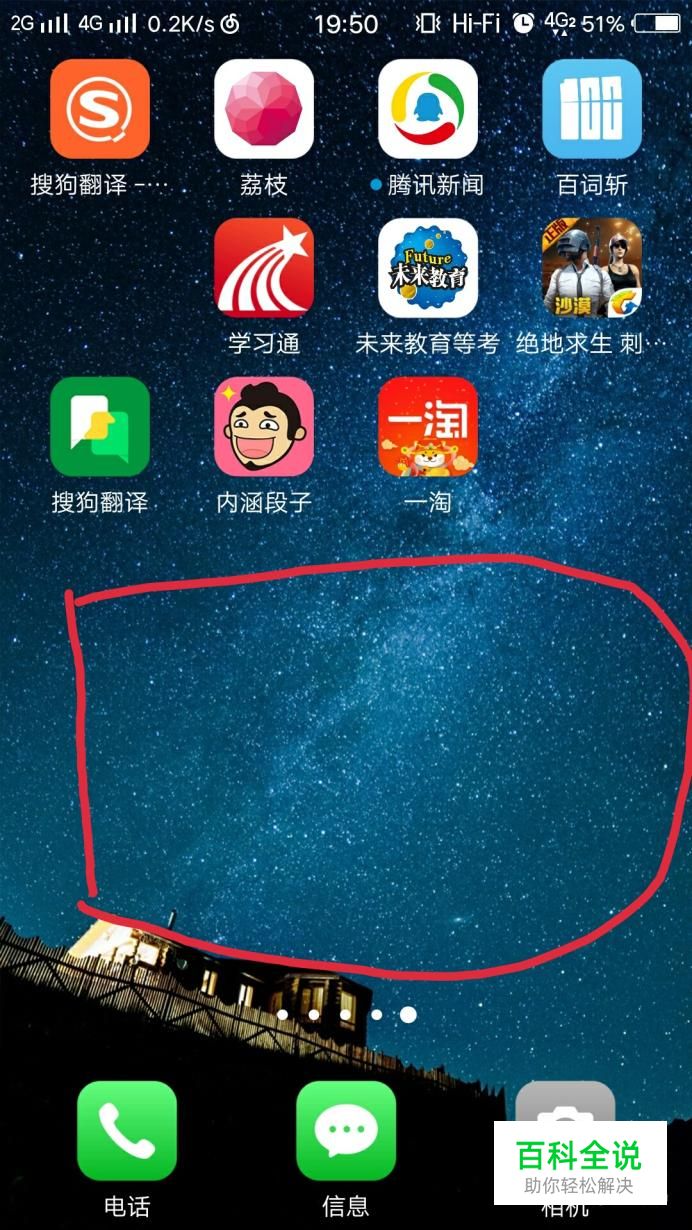 首先选中除软件图标以外的空白区域并长按此区域。