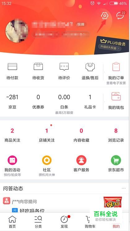 首先我们登录手机版的京东,打开“我的”再打开右上方的“账户设置”。