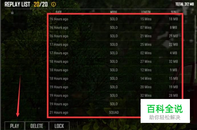 这里出现的红色框内就是你的最近20场录像,可以任意选择一个,点击左下方播放按钮。