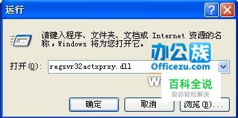 按“Win+R”打开运行输入“regsvr32actxprxy.dll”。