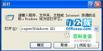 再次打开运行输入“regsvr32shdocvw.dll”。