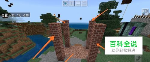第一步,我们首先拿出砖石在地面上搭建四个六格高的柱子,如下图所示。