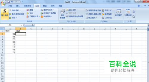 打开工作表,选择B2单元格,点击“公式”选项卡,点击“函数库”组“插入函数”。