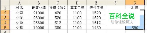 在统计报表制作完成后,有时会因新增加了数据而重新计算统计结果。例如,在“员工月工资统计表”中,已经根据员工的销售额业绩完成了工资的统计,可此时发现本月最后一天的销售额没有统计到销售业绩中。在这里,需要将31号的销售额加入到原本的销售额中: