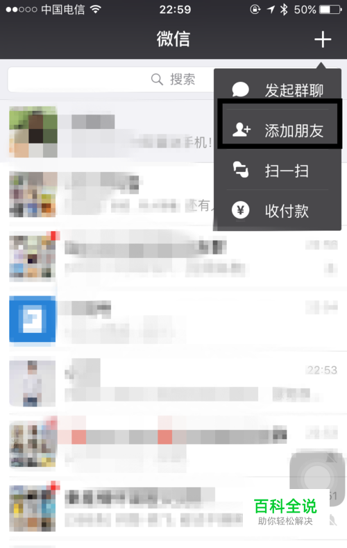 首先我们进入微信的聊天页面,点击微信聊天界面右上角上面的+号,然后在弹出的对话框内选择添加好友的选项,当然也可以通过通讯录进入