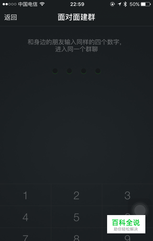 在下一个页面输入四个数字,为了避免周边有人,建议输入复杂一点的,反正也只有你一个人,所以也不用记住,然后点击进入群聊
