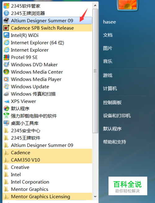 在电脑桌面开始菜单中打开Altium designer 09软件