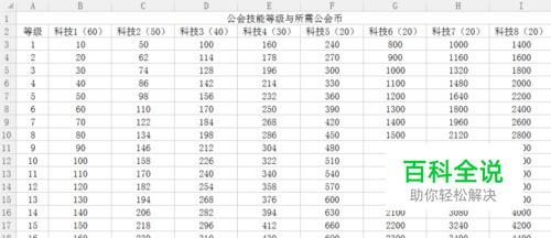到目前为止,共有5系科技,每系科技分8项,游侠职业没有暴击科技,但有其他职业不具备的命中科技,30层点满共加15%的命中。升满1系科技共需22w4950公会币,对面板战力影响较大的类型是百分比生命、百分比攻击,而闪避、暴击、暴伤、技能伤害这4项每级固定加10战力,速度科技不影响战力。以下是具体每级所需公会币(为了整齐,图中前四项科技隐藏了超过20层的公会币数,每项科技相邻两层所需公会币数是成等差的,下图也给出了差额)。