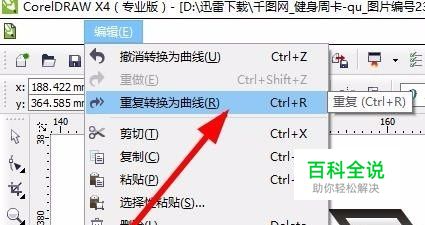 如果第二步的操作没有完全选中文字部分的话,可以进行再次转换为曲线命令的操作,如图所示。