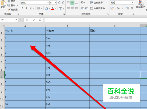 然后将长方形的数据列,选中。