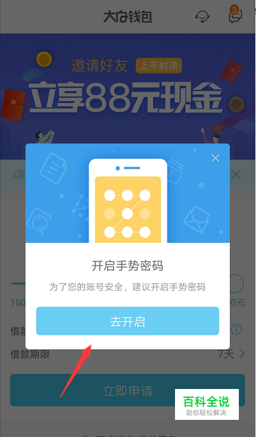 然后我们打开大白钱包APP,然后点击我的,选择账号密码登入,然后开启手势密码【登入过后会自动提示你开启手势密码】