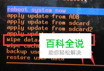 操作完第三步后,会看到一大堆英文,这时我们按音量减键下移光标选择wpi data/factory reset,按音量加键选择确定(擦除数据,恢复出厂设置)。