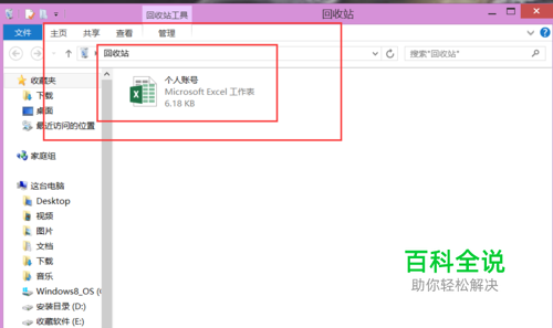 点击回收站图标,进入《回收站》文件夹,就可以看到里面删除的文件了。