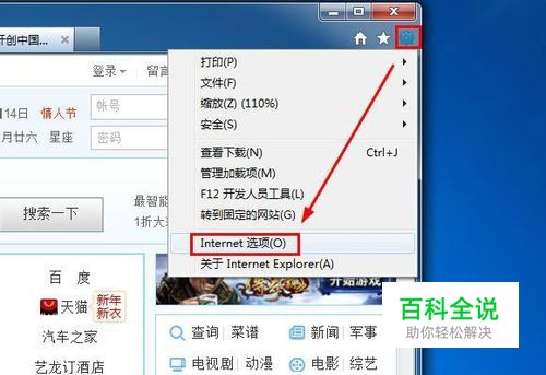 打开IE浏览器,依次点击选择右上方的“工具“、”Internet选项“。