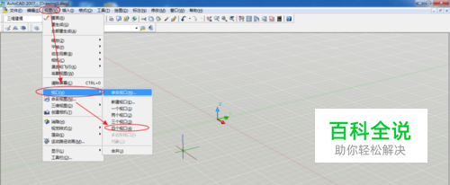 切换好后,如图所示。我们只需要在主视口中绘制就可以分别看到主视,俯视,左视和东南轴测图。