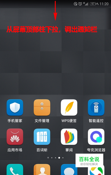 首先,在手机桌面从屏幕顶部往下拉,调出通知栏。