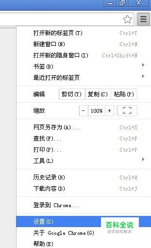 打开Chrome浏览器,点击 菜单,点击" 设置":