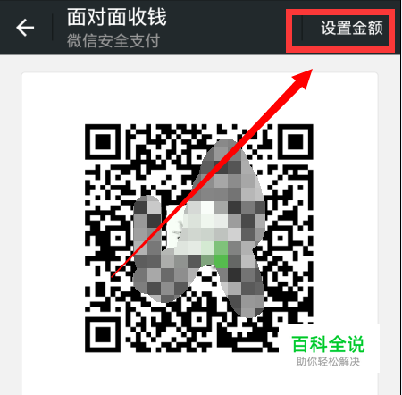然后会出现一个带有你信息的二维码,点击右上方的【设置金额】,如图所示: