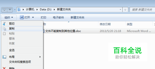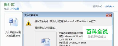 遇到文件无法复制 讲解实例中一个word文档被office2003打开,真正进行编辑。当我用常规的操作选中word文档进行复制时,系统弹出对话框提示无法复制。
