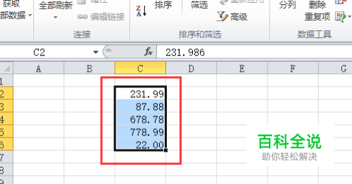 回到我们的表格中,我们可以看到表格中小数点后的三位数已经变成了两位数了。如图所示