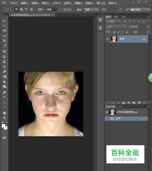 由Adobe Systems开发的Photoshop是一种强大的图像处理软件,它可以制作出许多精美的图片,这一次我就来教大家如何利用Photoshop来去除面部痘痘