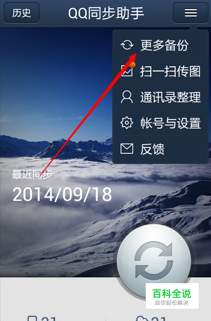 如果你只认为QQ同步助手就能备份通讯录,那么你就错了,你可以看到QQ同步助手右上角位置有一个菜单标志