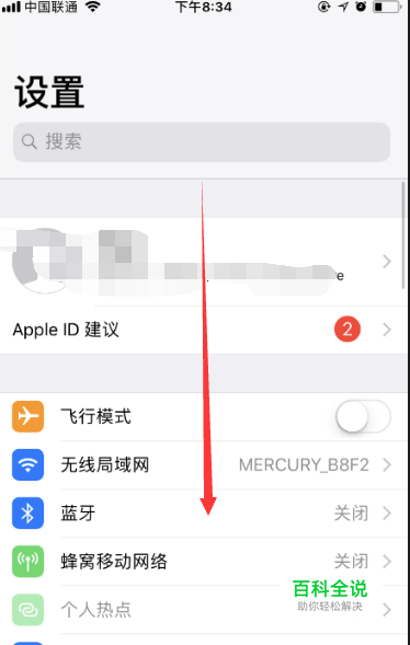 下滑后找到siri与搜索,点击进入siri与搜索页面。如下图红标位置所示。