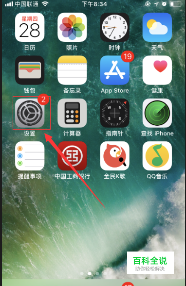首先打开你的iPhone,进入苹果主页面,如下图所示,找到页面中的设置入口点击进入