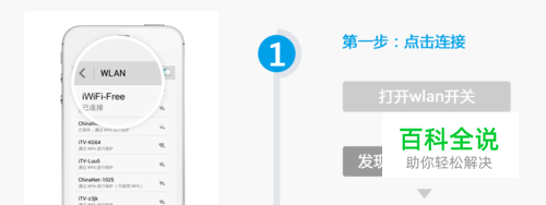 第一步点击连接->打开WLAN开关->发现IWIFI-FREE信号->点击连接
