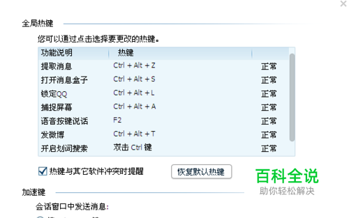 在qq热键与其他软件的热键冲突,导致在按热键时只有其中一个软件有作用,另外一个软件没有反应,这样可能原因为设置了相同的热键,以下详解方法。