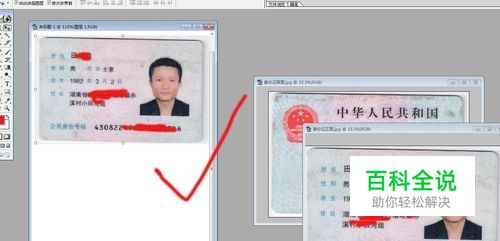 打开PS软件,准备好两张扫描的身份证图片,正面和背面