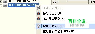 右击HD1,在菜单中选择“搜索已丢失分区”。