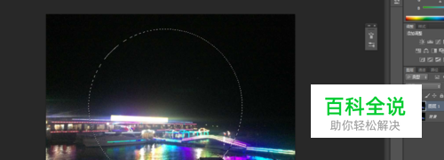 点击椭圆工具 然后在图层汇总,在图层中画一个正圆选区 如图所示