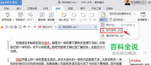 如果要改变修订的标记、批注框等细节,我们可以单击修订右下角的黑色三角符号,然后在下拉菜单中选择“修订选项”。