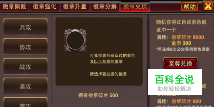 说了这么多,那我们徽章应该如何获得呢?其实徽章最主要也是最简单的获得方式就是我们徽章系统里的兑换功能了,兑换分为至尊兑换和随机兑换。指挥兑换可以随机获得红色和紫色品质的徽章,并且每10次兑换下一次一定可以得到一个紫色徽章哦~!随机兑换就只能获得其他三种低品质的徽章了,每10次兑换下一次必定得到一个黄色徽章。其他的获得方式就是参加我们游戏的一些活动啦~,所以大家要抓住每一次机会 最后,小编建议大家多多积累资源,用至尊兑换功能换取我们最厉害的徽章,不然会被拉开太多差距哦!加油