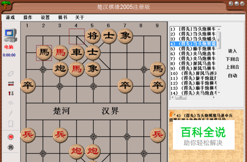 当头炮鸳鸯马进中兵双横车破士角炮直车右单提马局:开局界面