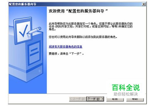 执行【开始】→【管理工具】→【配置您的服务器向导】菜单操作,打开如下图所示对话框。