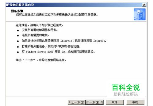 单击“下一步”按钮,打开如下图所示对话框。这是一个预备步骤,在其中提示了在进行以下步骤前需要做好的准备工作。