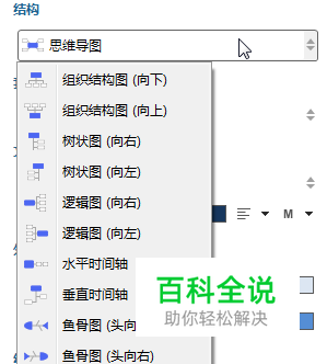 结构 该属性可以更改主题的视图结构,增长方向,包括树状图、鱼骨图、时间轴等。子主题可以结合自己的实际情况来调整为其他的“结构”,即可以多个导图结构组合使用。