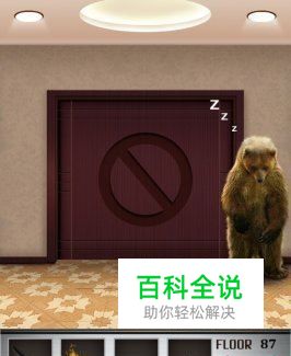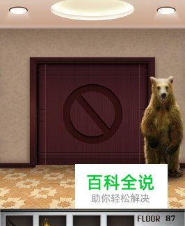 熊出没,小心!在100层电梯游戏第八十七关中,电梯门口站着一只大熊在睡觉,有了之前那么多关的经验,本关还是比较简单的。