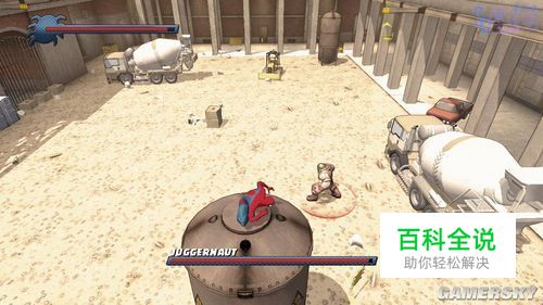 一开始打BOSS,我们站到会爆炸的这种罐子最上边,等BOSS撞过来后躲开,等BOSS被炸飞后近身按B攻击。等三个爆炸物都炸了后BOSS开始扔车子,躲开之后上去攻击,然后在等他扔车子,循环几次,他没血后一拳把我们打到几百米之外。