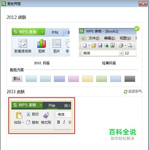 在弹出的窗口下找到”2013皮肤“,单击”更改“按钮