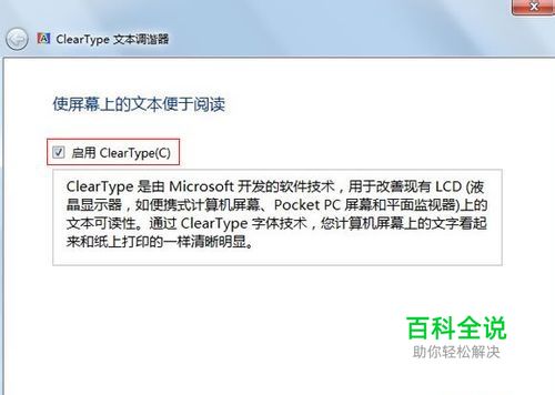 勾选启用Clear Type,然后点击下一步。